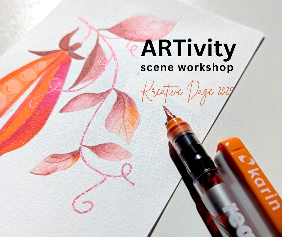 Tag med til ARTivitys sceneworkshop ”Sweet Pea” og oplev, hvordan du kan forvandle et hvidt stykke papir til et kunstkort med det abstrakte ærtemotiv. Lær teknikker og effekter med den helt nye Karin Realbrush Pro akvarelmarker. Ingen forkundskaber nødvendigt.