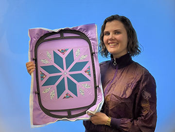 Både fredag og lørdag kan du lære af Fie Voigt Andersen, der præsenterer arbejdet med en quiltet jakke sammensat af paneler dekoreret med udvalgte quilte- og broderiteknikker – en praktisk og lærerig demonstration for alle, der vil fordybe sig i moderne quiltning og broderi.